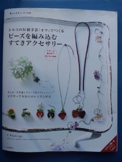 先月に続いてビーズ編みのアクセサリーの本から「カモミールとビオラのラリエット」を。