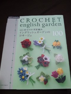 画像の「はじめてのかぎ針編み イングリッシュガーデンのコサージュ」は先日、手に入れた本。