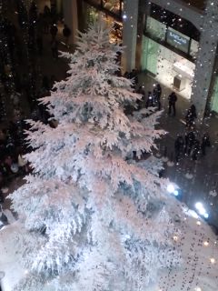 建物の吹き抜け内部を飾る白く輝く美しいツリー。
