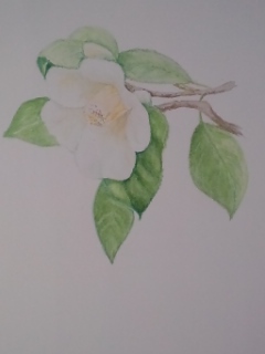 白い花は書くのが難しく(植物画は背景を塗らずに白い画用紙のままなので)避けてきたんだけど、たまにはね。
