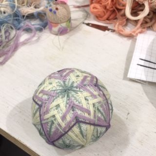 4時間ほどの作業で画像のてまり直径8センチくらいが完成。