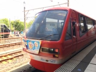 普通電車がたまたま赤いプラレール号、車内は伊豆の観光PR満載でした。