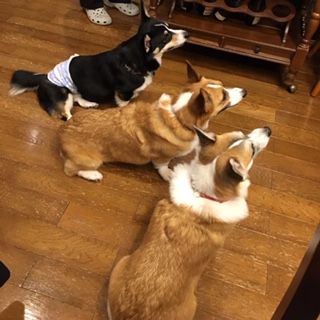 画像はお宿「ななつぼし」さんのコーギーズ。