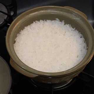 水に浸さないし私は柔らかめが好き、小さい土鍋なので米一合に200ccの水多めで。