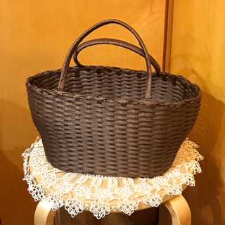 冊子ではバッグの口まわりと持ち手に違う色のバンドで飾りをつけていましたが、私はこげ茶一色で仕上げました。