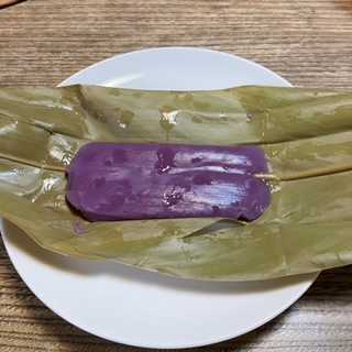 葉っぱは月桃、中の紫は紅芋入り、ほのかに甘い。