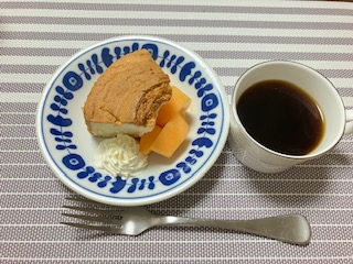 バースデーケーキは娘がエンゼルシフォンケーキを焼いてくれて、メロン、生クリーム添え。