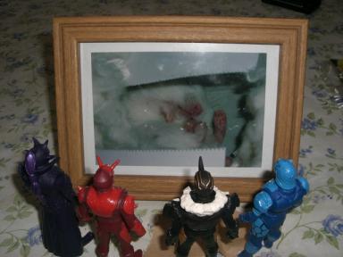 どーもー♪駅長で~す(ウソ)えーっと。確かカゼで休んでたんですが、カゼ自体は水曜辺りにかなり良くなってました(^^;)で、正直言うとこんだけ休むと何書いていいか分からなくなって。今日に至るのであります(^^;)話はたくさんあるんですがね、まずはコレが届きました!!じゃーん!!だいぷくさんからマウスパッドの贈り物~っ!!先に写真で見てはいたんですが、実物はすごく可愛くて(^^)使ってませんよ!!もったいないですから~っ!!(袋からも出してません、ヲタですから・・・・)でね、直筆メッセージ付きカードも頂きましたが字がキレイ・・・・・因みに私の字は、火を入れた直後の柳川鍋のようです。(ドジョウうようよ~、って意味)でです。小さい封筒に貼ってあったシールがこれまたメチャンコ可愛くて!!コレなんですよコレ!!きなこどす!コレさ、S○N-Xに掛け合って、一枚150円くらいで商品化しません??そのくらい可愛いんですが~。だいぷくさんちの娘さんのクリスマス会に行くと京浜、いや景品になってるんですよね?オバーン参加したいわぁ!!と言う訳でだいぷくさん、ありがとう!!ありがとう!!イェーイ♪お礼のポーーーーーーズ!!次ーーーーーっ!!カゼで苦しみながら?でもハムとは遊んでました(^^)夜中になると走るのが速すぎてついて行けないトチロー。こんな写真になります(汗)ズバリボケでしょう!!ちゃんと写らないの。ですが巨匠ロックンではこうなりました。頭にタネを乗せても気が付かない~・・・(笑)その後、違うおやつでも試しましたが、重いものを乗せても嫌がるそぶりはするものの・・・逃げない。堂々たるものです(^^;)はい次ーーーーーーっ!!先日、やっとクリスマスツリーを出しました。うちのは家は狭いくせにでかいのを買ったので120センチ。今日、子供によって倒されてました(汗)コレを買ったのはモルが生まれて初めてのクリスマスでした。当時身長50センチちょっとくらいだったモルは、今年やっとツリーの高さを抜きました!う~ん成長したなぁ。で、それとは別に小さいツリーを出しました。狭い玄関にささやかに作られたクリスマススペース。怪しいのも居ますがこんなかんじです。キューピーとぼのが可愛いでしょー?で、ツリーを拡大。いつもの奴ら参上~っ!!キーチェーンはこうやって使いたかったんですよ!!しかしウラタロスばっかりだ・・・・・。これで撮影終了なので、ハム様にウラちゃんその他お送りしますね~。待っててね、イェーーイ!!今週中には・・・のポーーーズ!!次ーーーーーーっ!!次は笑えない話。挑戦していたリカバリですが、ソニーに問い合わせた所死亡宣告を・・・いや、修理を勧められてしまいました(泣)理由は、内蔵CD-Rが壊れてるのでリカバリ自体不可能との事。外付けではリカバリできないんですってーーーーー。修理代平均4~5万。CD-Rドライブを入れ替えるだろうから多分そんなんじゃ利かない。なのでさ、パソ本体買い替え検討中・・・・・・。正直財布がツンドラ地帯なのでさ、買うのは痛いのさ。だけど・・・・。リカバリを決意した理由は、鈴村健一のWEBラジオが見たかったから。新しいメディアプレイヤーが、メモリ不足でインストールできないのさ!!っていうか、足りないから動画はほとんど見られないのさ~っ!!やっぱり見たいし~(笑)色々使うから、実際は何万掛かっても元は余裕で取れちゃうんだけどね。散々いじったお陰で最近動きも少々おかしい、マジ寿命ってカンジです。年賀状は今のバイオでやりますが、年末にはソーテックに替わってるかも。(ビックリするくらい安いですねー!!)しかも明日中だとポイント10倍、こりゃ焦るわな~っ!!今度は下手打つ前にちゃんと設定を変更して、今みたいな状態にはしない予定。負けるな~っ!!うちが初めて買ったWin95・・・・プリンタ入れて28万円。パソコンの値の下がり方は本当にすごいです。(どーせ一括で買わないんだから、ゲーム売ってる店で買ってDQ4とか同梱してしまいたい、とかも思ってしまう私^^;)最後にーーーーーーっ!!モル画伯作六太の絵。ちょっと恐竜っぽいですが何か(笑)彼の絵は最近おもろいです(^^)上:アンドロメダマ号下:オタスケサンデー号上左:オタスケタヌキ上右:オタスケサイ下左:オタスケアシカ下右:オタスケウータンオタスケガエル・・・・・最近は自分で描いて切って、それで遊ぶのが大好きです。子供の頃私も自作の着せ替え人形で遊んでたのを思い出しました(^^;)という訳で、なぜか今うちではオタスケマンが流行ってます・・・。この中で私が一番気に入ってるのがタヌキ!!これやべーかわいーじゃんっ!!サイは「ノコノコに似ている」と言ったら、サイを持ってマリオごっこしてましたわ(笑)切り替え早っ!!オタスケのヒカルはかっこいいねぇ、ガンちゃんの次に(笑)声がまた水島裕、裕兄ちゃんだからまたまた良いのです(*^^*)で、結局先週の電王がまだ見れてないので、今週のとまとめて見てしまおうと思います。残りあと4回!!なかなかクリビツテンギョーな話になるら