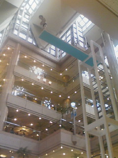 テレビでも取り上げられた、この作品はランドマークプラザの吹き抜けに展示されています。
