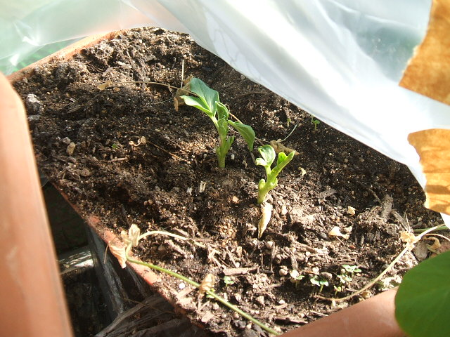 はじめて植えたソラマメですが、これからどう育つか楽しみ。豆の中ではくきがしっかりしているから風にあたっても強そうだな