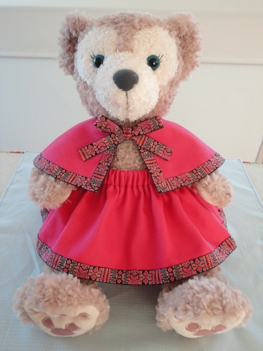 mixiのアルバムにケープの作り方の工程の写真図解を載せました。ダッフィーやシェリーメイに服を作ってあげたいけれど、ワンピースのウエストをはいだり袖を付けたりはちょっと難しくて出来ない・・という方、是非トライしてみてください。ケープ&パンツ、ケープ&スカートのセットで作れば、充分全身の服に見えると思います。(下のほうにセットの写真が載っていますので見てくださいね。)「初めての洋裁」に一番いいアイテムだと思います。まずは周りに飾りテープなどは付けずに、シンプルにケープだけで作ってみてはいかがでしょうか。http://photo.mixi.jp/view_album.pl?album_id=500000079269999&owner_id=47314531型紙に関してはこの下の欄をご覧くださいませ。