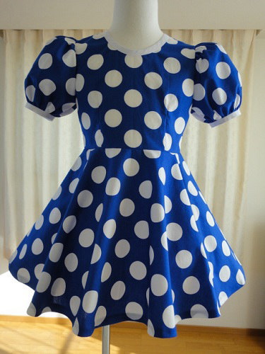 本に掲載したパフスリーブドレスの型紙で、ヒザより短い丈のパフスリーブのワンピースを水玉柄で作りました。衿ぐりも袖口も白のバイアステープでくるむ仕様にしてあります。これはもっと早く書くべきだったのですが、掲載の型紙を水玉ワンピにアレンジする方法をサイトのページに書きました。ワンピースが完成してからと思っていたら遅くなってしまって。申し訳ありません。http://www1.ttcn.ne.jp/~kaori/girl's%20d%20.htm作る工程を撮りましたので、またmixiに写真図解を載せます。こちらももう少し時間がかかると思います。ご了承くださいませ。本を買ってくださった方で、型紙を利用してキャラクターの服を作っていただく方にこれからこのサイトで、アレンジの仕方などをご案内する予定のものを書いておきます。写真図解はmixiのアルバムページになると思います。サイトの画像の容量に限界があるためmixiでの紹介になってしまいます。ご覧になりたい方はどうぞ加入なさってくださいね。・ベル・・・・・・スパークハーフで作るドレープ衿(P.36掲載)の作例と写真図解・オーロラ・・・・Aラインワンピースをブラウス丈にして、裾をジグザグにする 場合の作図の仕方 立ち衿の作り方(P.40掲載):作例と写真図解・シンデレラ・・・ランタンスリーブの袖のボーンの入れ方の写真図解・ピーターパン・・プルオーバーシャツの裾をジグザグにする場合の作図の仕方 衿ぐりの見返しの付け方の写真図解今はこんなところでしょうか。本に載せられなかったことをここでフォローして買ってくださった方々にご恩返しが出来ればと思っております。