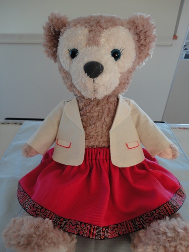 差し上げるのはジャケットのみのパターンですが。本番(?)生地で作る予定はないので、試作品のみの画像でごめんなさい。それから写真のスカートはプリーツじゃなくてギャザースカートだし。ベストは無いし。ベストは、本に載せたベストをちょっと直せば出来ると思うので、そのうち製図をスキャンして載せますね。・・多分(^^;型紙のお申し込みはケープのときと同様、本を買ってくださった方で、メールで感想を書いてくださった方に限らせていただきますね。ご意見聞かせていただきたいので・・。と言いますか。差し上げるのは「前身頃・後ろ身頃・前見返し・後ろ見返し・ポケットのフラップ」のパターンです。表衿・裏衿・袖は本に掲載のパターンをご利用ください。A4サイズの画像を圧縮ファイルでメールに添付してお送りします。プリントアウトしてお使いください。楽天やamazonでレビューを書いてくださった方、このブログに感想をコメントで書いてくださった方は無条件で差し上げますのでどうぞご連絡くださいませ。 本を買ってくださった方に、高い本を買ってくださったことへの少しでもお礼になればと思い、お送りするものです。ご利用ください。 coly@mx1.ttcn.ne.jp これは今のところmixiに作り方のアルバムを載せているヒマがないので、普通のテーラードジャケットを作れる方、もしくはジャケットの作り方の載っている本をお持ちの方でないと作れないかもしれません。パターンのみの提供でごめんなさい。一応、制服ミニーのグリーティングで色々と資料写真を撮って、ジャケットのラペルの形とか、ポケットのフラップの大きさや位置は検討した上で試作品を作りました。ミニーのジャケットの後ろ中心はセンターベンツですが、わざわざシェリーの服にベンツを作る人もいないだろうと思い、ベンツなしの型紙です。袖のあきみせも後ろのパネルラインも無しです。子供服だったら作るけどねぇ。