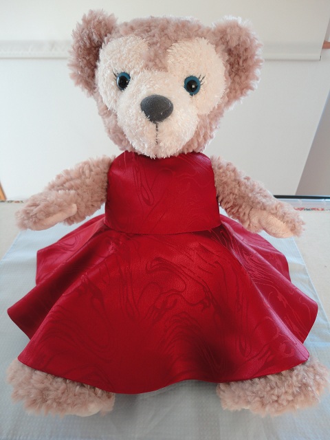 本の型紙を使って、ノースリーブのドレスを作ってみました。本に掲載した作品はパフスリーブの袖を付けていますが、身頃の型紙はノースリーブで作っても大丈夫です。何も装飾を付けていませんが、ウエルカムドール用のドレスとして、このシンプルなドレスにスパークハーフ(オーガンジーのような透ける生地で伸びる生地)でドレープ衿(ベルの黄色いドレスのような衿)を付けたり、巻きバラなどで装飾を加えてみてはいかがでしょうか。巻きバラの作り方は、子供用サイズですがP.37に掲載しております。工程を写真撮りしたので、またmixi用に図解ページをただいま作っております。撮影時に画像を小さくして撮る設定が出来るようになったのに、失敗してまた大きな画像サイズのまま撮影してしまいました。これから全部、画像処理のソフトでサイズを1枚ずつ小さくしなくてはイケナイと思うと気が重い・・。一度に全部出来る機能ってないんだろうか。撮った後にカメラのほうでサイズ変更って出来ないんだろうか・・(^^;衿ぐりと袖ぐりを一緒に見返しで処理する作り方を覚えると、ジャンパースカートが作れるようになります。ぬいぐるみ服と言えども侮るなかれ。子供服作りと同等のテクがいっぱいです。これが作れたら子供服のジャンスカや袖なしワンピも作れると思います。ウエストはぎのワンピースは、ギャザースカートよりもこのフレアスカートのほうが作りやすいかもしれません。全円フレアなのでたっぷり広がります。本に掲載のぬいぐるみ服の型紙は、縫い代つきで切ってそのまま使える型紙ですが、フレアスカートだけは描き写してご利用くださいませ。