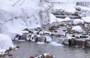 さてさて、先日に師匠と巡った冬景色の旅。 本日も続編として北上川の源泉(水源)を紹介いたします。 松川温泉の後に、先輩のあきさんと合流してランチを楽しんだ私たち。 次なる場所として向かったのは、一戸町です。 その道中の岩手町があります。 この岩手町、「北緯40℃の街」としても知られています。 そして、東北で最大の河川である「北上川」(きたかみがわ)の源泉(水源)の在る街でもあるのです。 その源泉が在る「御堂観音」に訪れました。 そして、中に入ると「ゆはずのいずみ」と称されるところがあります。 この木の根のところから流れ出る水が こちらの泉へと溜まり、その流れ出たが東北で最大の河川の源になっているのです。 この北上川の長さは249kmで、その長さは全国でも4位の雄大さを誇ります。 そして、この光景はとても神聖な雰囲気もありました。 源泉の在る御堂観音、岩手町の国道4号線から少々入ったところにあります。 みなさんも訪れてみてください☆