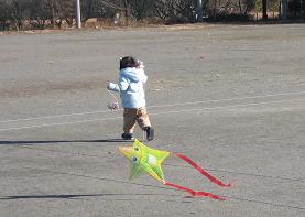 育児支援で凧揚げをしました。凧は、梱包財のプチプチシートとストローで作りました。御子と凧にお絵かきして、タコ糸をつけて出来上がり。園庭(育児支援は保育園でやってます)では空っ風が吹き荒れる、絶好の(?)凧揚げ日和。タコ糸は1メートルくらいしかないので子ども達は凧を飛ばすとか関係なくひきずって走り回ってました。それが楽しいなら、それでヨシ