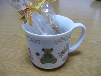 出産前にバイトしていた職場で一緒だった月姫さんから、御子にプレゼントを頂きました。カップにささっているのはスティックシュガーです私には、白雪ふきんを頂きました。こんな風に、お会いする機会がなくなってしまっても気にかけてくださっていることに感激しましたカップも、世界に1つのものということで、大切に使わせていただきたいと思います。ひとまず、今預けたら一発で割ってしまうのでもう少し大きくなったら、大切に使わせたいと思います。この場をお借りして…月姫さん、本当にありがとうございました。大切に、大切に使わせていただきます。