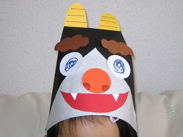 昨日に引き続き、育児支援です。今日は、ぐんまこどもの国児童館の人が来てくれて手遊びや踊りなど、沢山してくれました。節分が近いということもあって、大きな折り紙で作ったのは、コレ。オニですぞ目やクチなどのパーツは用意してあって福笑いみたいに並べて、目玉を書きました。御子の鬼は、目が回っているようです。