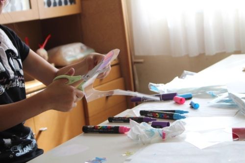 キッズクラスでプラバン工作をしました。子どもは平面材料をカットするとき、小さなものでもど真ん中を切ります。材料を無駄なく使う発想はありません。今回は同じ材料2枚わたしました。もう1個作りたい、もっと大きなものを作りたいと経験を重ねることで、限られた材料をどう使うか考えるようになります。残った材料に合う絵も考えるようになります。仕上げはストラップ、バッジ、マグネット。自分で使い方を決めます。ストラップだと予め穴を開けておかなくてはいけません。バッジやマグネットにするときはしっかり色を塗っておかないと仕上がりに影響します。簡単なものでも先を想像しなくてはいけません。