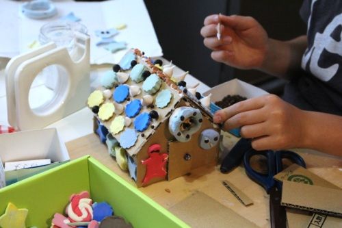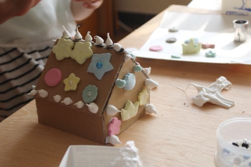 引き続きお菓子をテーマにした工作です。私が段ボールで作ったベース(家)を組み立ててもらい、先週作った粘土のお菓子を貼り付けていきます。私が用意したものに飽き足らず別のものを作ってもOKですが、今日の生徒さんは素直にお家を作っていました。6年生女の子。完成かなと思ったけど、来週まだ続きをするそうです。4年生女の子。完成です。2年生男の子。こちらも完成です。中に入る箱も作り、小物入れとして使えます。