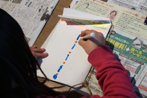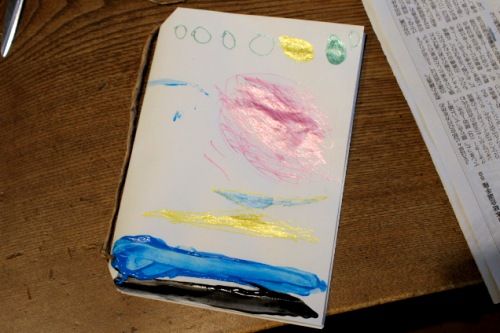 集中力が途切れてしまったらそこで終了。お迎えが来るまでこちらは落書き帳を作って表紙にイラストを。