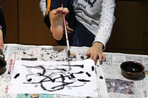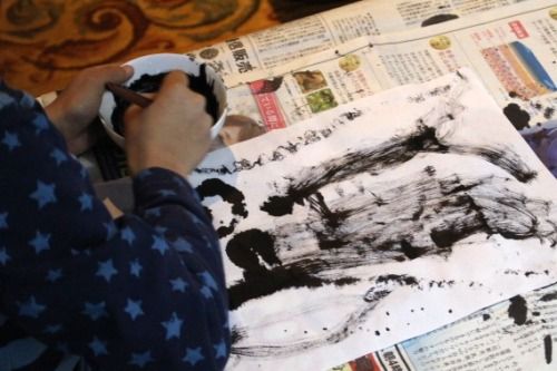 今日も描き初めをしました。1本の筆のみで描いたことのないものを描く挑戦です。