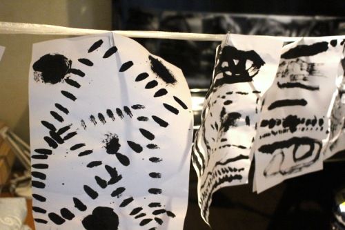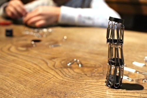 墨を乾かすために使ったゼムクリップと磁石で遊んだりしました。こんなものでも結構盛り上がった。