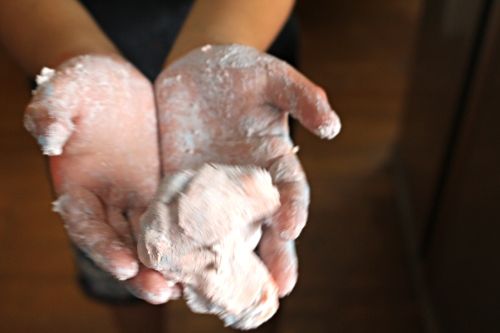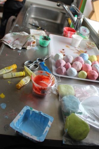 時間が少し余ったので、フィンガーペイントで残った絵の具を使ってカラー粘土を作ったりプラバン制作をしたりして遊びました。