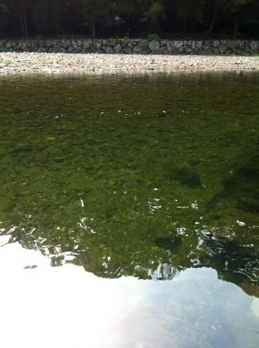 内宮に移動して、倭姫命が着物の裾を洗ったという五十鈴川です。お魚いっぱい。清流です。