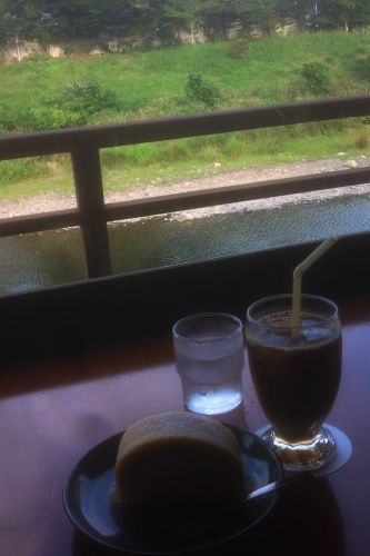 五十鈴川カフェ。五十鈴川を眺めながら休憩できます。こだわりの蜂蜜入りのケーキをいただきました。入口が奥まっているので、少しわかりにくいかもしれません。