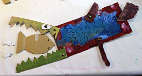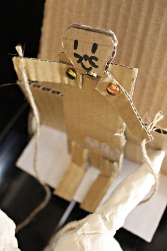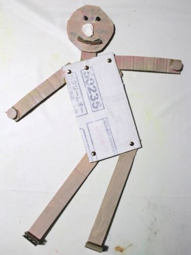 これもKくんが作った、段ボール人形。割ピン使ってます。これをヒントに…
