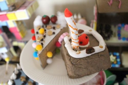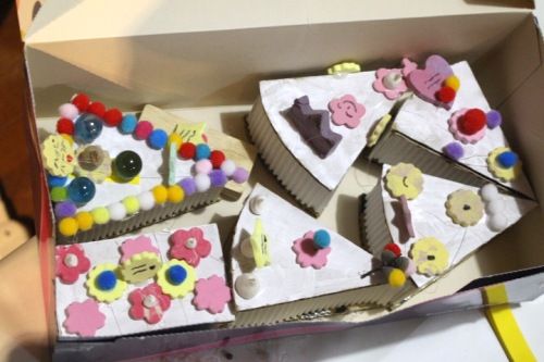 作品展に向けて「お菓子の国」も作りつつ、お菓子作りに飽きてしまった子のために段ボール工作も用意しました。
