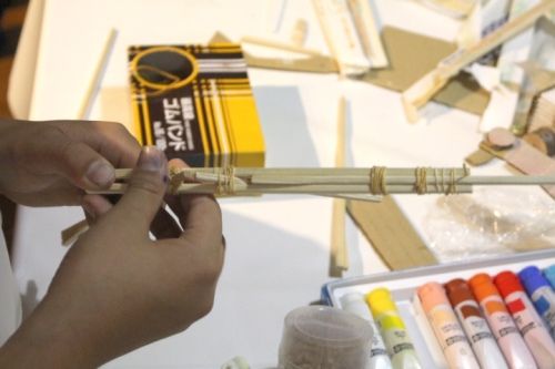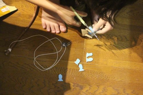 全然関係ない、割り箸鉄砲を作るDくん。