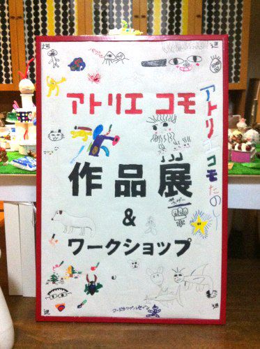 看板を作ってもらってます。文字の下書きだけは私がして、色を塗ったり、自由にイラストを描いてもらいました。