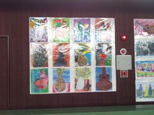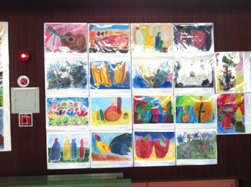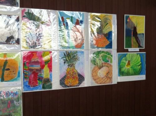 個人作品のコーナー。家で保管してる作品で見せたいものを自分で選んで、展示します。持ってこない子もいます。