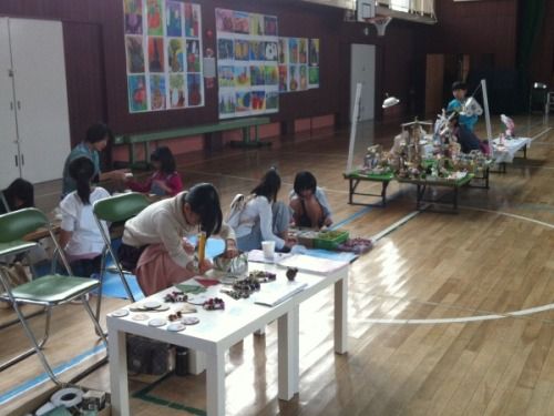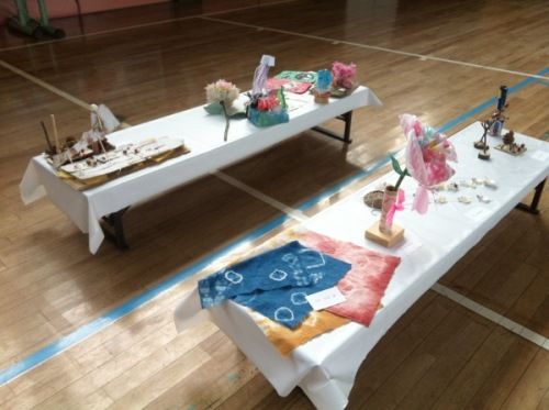 地元地域のお祭り、「ふれあいフェスティバル」に出店しました。体育館をお借りして作品の展示とワークショップをやりました。