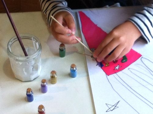 ラメの粉をくっつけることに没頭しちゃいました。