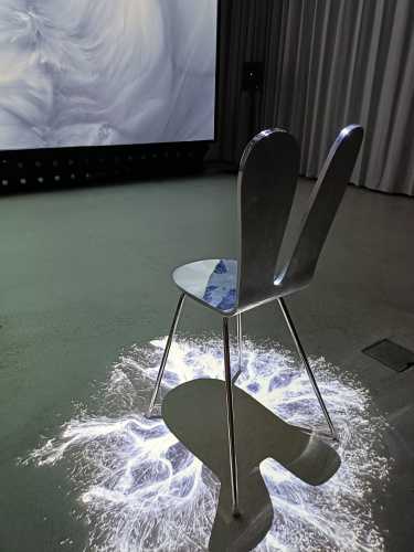 アートサイエンス 椅子に座ると座った人の顔が映し出され…