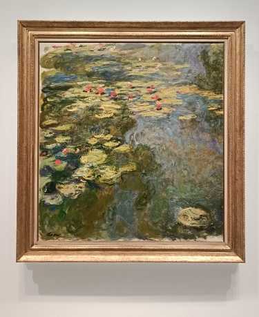 基本的に撮影不可で撮影場所は限られています。睡蓮の他、アガパンサス、藤、枝垂れやネギなど日本で馴染の植物が描かれた作品が来ており、親しみを感じました。晩年は目を患い、視力が落ちた中で描き続けた激しい色合いの作品も印象に残りました。