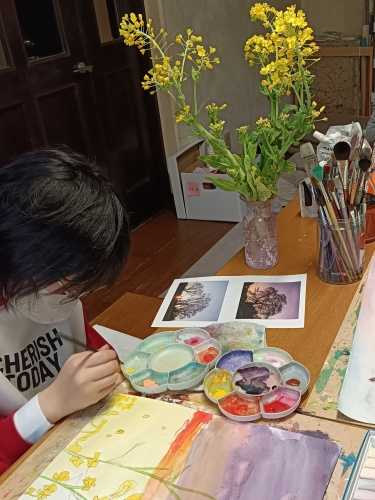 これも菜の花、同じ花を観察して描いたとは思えない。みんな自由過ぎます!