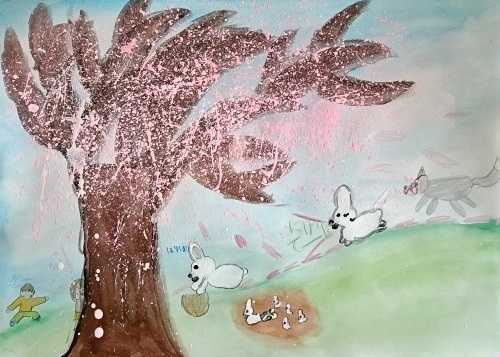 春に咲く桜や菜の花を題材にイメージを膨らませて描いてみよう。桜は風景の写真、菜の花は切り花を用意しています。