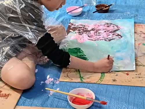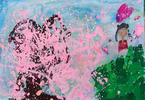春の花を題材にサクラや菜の花を描いています。ただ対象物を描くのではなく自分なりに発想を飛ばして自由に空想して描きます。