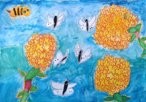 こちらは菜の花です。蝶ににもこだわって描いていますね。
