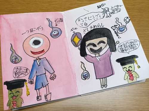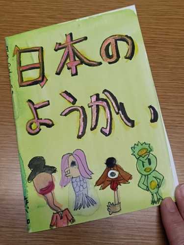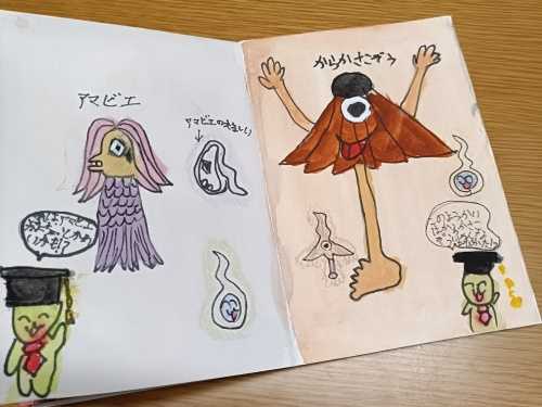 妖怪図鑑のようです。タイトル文字しっかりとよく見えるように強調して描いていますね。