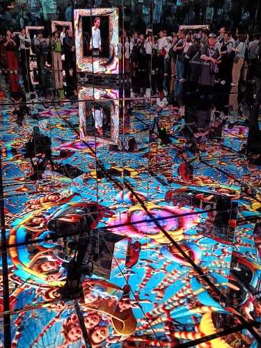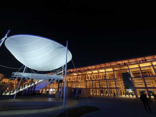 万博をプロデュースした藤本壮介設計の「森になる建築」やクラゲ館を見て、落合陽一さんのnull2へ。建物を覆っている膜が震えたり、ぐにゅっと動いたりとこれまたびっくりです。