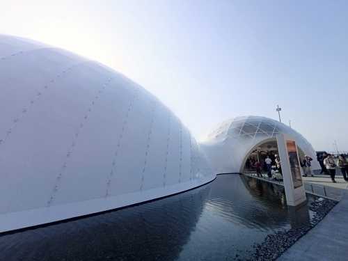 水をテーマにした現代アートインスタレーション(いつまでも見ていられる)とマイクロプラスチックによる海洋汚染をテーマにした映像を見ることができます。建築は坂茂。竹を使った低CO2建築で移設先も決まっている。