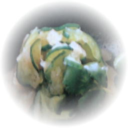 器に平貝と胡瓜、大根おろしをあえて盛りつける。