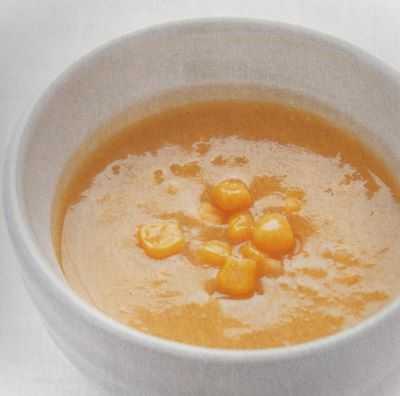 材料2人分: コーンクリーム缶小1缶、スイートコーンドライパック1袋、 スープの素