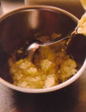 辛みを抜いた玉ねぎに植物油と米酢を加え、あとは塩、こしょうのみ、前もってつくって冷蔵庫で冷やしておいても~