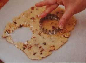 ​​​ボウルにパンケーキミックスを入れ、バターを1㎝角に切って加え、両手でつぶすように混ぜ、すり混ぜて粗めのパン粉状にする。イチジク、レーズンを加え・・・生地をまとめ冷蔵庫で30分ほど冷やす。